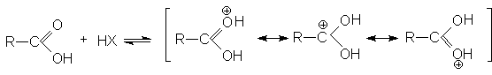 Несмотря на малую концентрацию протонированной формы присутствие небольших количеств сильных кислот исключительным образом влияет на реакционную способность карбоновых кислот: повышение положительного заряда на карбонильном углероде делает его восприимчивым к атаке нуклеофильными реагентами и открывает возможность для протекания многих реакций нуклеофильного замещения карбоновых кислот. Date: 2015-07-27; view: 663; Нарушение авторских прав |