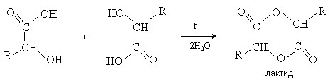 Отношение гидроксикислот к нагреванию. Превращения гидроксикислот при нагревании определяются возможностью образования термодинамически стабильных 5-ти- 6-тичленных циклов a -Гидроксикислоты вступают в реакцию межмолекулярного самоацилирования. При этом образуются циклические сложные эфиры – лактиды.