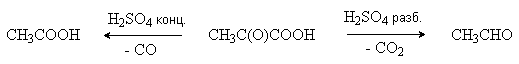Отличительная черта оксокислот – легкость, с которой протекает их декарбоксилирование. a -Оксокислоты легко отщепляют СO2 и СО при нагревании в присутствии серной кислоты.