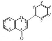 В конц. H2SO4 раств. с фиолетовой флуоресценцией, образуя нестабильную соль бензо-пирилия. При нагр. с алкоголятами флавон образует о-гидроксиацетофенон и бензойную к-ту (р-ция используется для определения строения производных флавона). В природе выделено св. 500 производных флавона. Осн. методы синтеза производных флавона- конденсация разл. гидроксифенолов с этиловым эфиром ароилуксусной к-ты ArC(O)CH2COOC2H5 при пониженном давлении или нагревание о-гидроксиацетофенона со смесью ангидрида и Na-соли ароматич. карбоновой к-ты. Изофлавоны — натуральные компоненты, содержащиеся в некоторых растениях, например в сое или красном клевере. Эти вещества относят к группефитоэстрогенов: их структура подобна эстрогенам человека, однако они менее активны. Изофлавоны являются естественной составной частью рациона человека, особенно в странах с высоким потреблением сои. Помимо их широко известной эффективности в борьбе с климактерическим синдромом у женщин (остеопороз, горячие приливы и ночное потение), изофлавоны обладаютметаболическими и антиканцерогенными свойствами, а также благотворно влияют на сердечно-сосудистую систему и кожу.