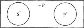 Наприклад: Жодна кішка не є собакою. Усі кішки є не собаками. Частковостверджувальне судження. 1(SP) —"0(S ~Р): "Деякі S є Р, отже, деякі S не є не Р".