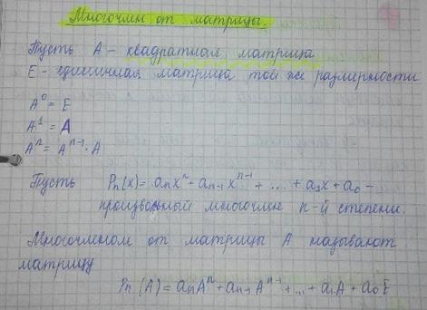 3. Возведение матриц в степень. Полином(многочлен) от матрицы. Примеры.