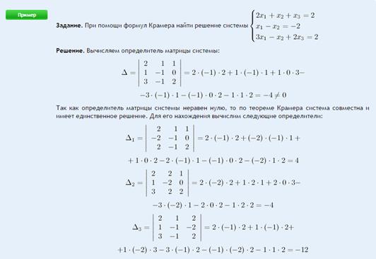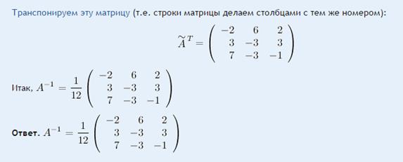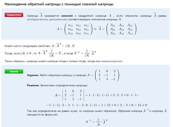 Решение системы с помощью обратной матрицы Пример 1 Решить систему с матричным методом Решение: Запишем систему в матричной форме: Пожалуйста, посмотрите на систему уравнений и на матрицы. По какому принципу записываем элементы в матрицы, думаю, всем понятно. Единственный комментарий: если бы в уравнениях отсутствовали некоторые переменные, то на соответствующих местах в матрице Решение системы найдем по формуле Согласно формуле нам нужно найти обратную матрицу Обратную матрицу найдем по формуле: Сначала разбираемся с определителем: