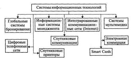 Современная индустрия туризма за последние годы претерпела весьма существенные изменения в связи с внедрением новых компьютерных технологий. Успешное функционирование любой фирмы на рынке туристского бизнеса практически немыслимо без использования современных информационных технологий. Специфика технологии разработки и реализации турпродукта требует таких систем, которые в кратчайшие сроки предоставляли бы сведения о доступности транспортных средств и возможностях размещения туристов, обеспечивали бы быстрое резервирование и бронирование мест, а также автоматизацию решения вспомогательных задач при предоставлении туристских услуг Это достижимо при условии широкого использования в туризме современных компьютерных технологий обработки и передачи информации. Индустрия туризма настолько многолика и многогранна, что требует применения самых разнообразных информационных технологий, начиная от разработки специализированных программных средств, обеспечивающих автоматизацию работы отдельной туристской фирмы или отеля, до использования глобальных компьютерных сетей. Многообразие применяемых в туризме информационных технологий приведено на рис. 1.1. В настоящее время формирование турпродукта предусматривает использование глобальных распределительных систем GDS (Global Distribution System), обеспечивающих быстрое и удобное бронирование билетов на транспорте, резервирование мест в гостиницах, прокат автомобилей, обмен валюты, заказ билетов на развлекательные и спортивные программы и т.д.