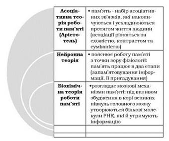 Рис. 2.3.1. Функції пам'яті Пам'ять - це складний пізнавальний процес, тлумачення механізмів роботи якого в науці не має одностайності. Існує ряд теорій функціонування пам'яті, які по-різному пояснюють роботу цього пізнавального процесу.