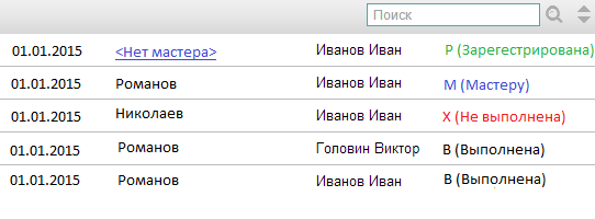 Рисунок 9 — Форма «Список заявок под правами мастера» На Рис. 9 изображено главное окно в программе под правами мастера. Мастер просматривает описание заявки, выполняет ее или же направляет клиенту на уточнение.