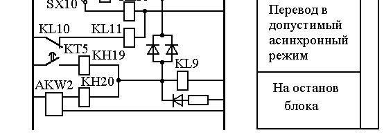 трансформатор с генератором ТГВ-300 Дифференциальная защита трансформатора блока, выполненная на реле ДЗТ-21, включена со стороны высшего напряжения на встроенные в силовой трансформатор трансформаторы тока. Данная защита не охватывает ошиновку на стороне высшего напряжения, поэтому последняя защищается дифференциальной защитой на реле с торможением. Замыкание на землю в цепи возбуждения сигнализируется защитой типа КЗР-3. Защита КЗР-2 на генераторе данного блока не предусматривается. В качестве защиты от замыкания на землю обмотки статора применено устройство типа ЗЗГ-11. На блоке устанавливается защита от повышения напряжения. Токовая защита обратной последовательности, защита ротора от перегрузки типа РЗР-1М и дистанционная защита выполнены со ступенчатым действием. Как и на предыдущей схеме, в выходных цепях основных и резервных защит для большей наглядности схемы условно показано по одному общему для разных защит выходному реле.