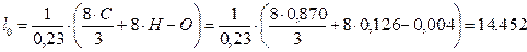 Розрахунок параметрів робочого тіла Визначаємо теоретично необхідну кількість повітря для повного згоряння одиниці палива: – у масових одиницях: