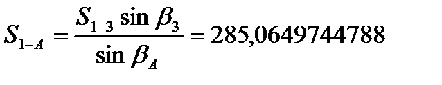 b3=a3-2-a3-1=213º01΄56˝3-173º41΄46˝4=39º20΄09˝9 b1=1º46΄39˝6 bА = 138º53΄10˝5 По теореме синусов: