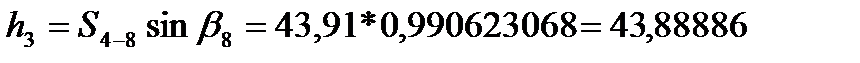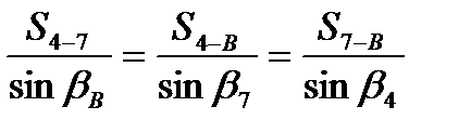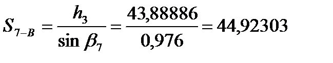 4.3. По теореме синусов вычислить стороны треугольника «4-7-В». Затем, по сторонам и углам вычислить его площадь (с контролем). b8=b6=82°27`16,6`` b7=b5=88°13`20,4`` По теореме синусов: