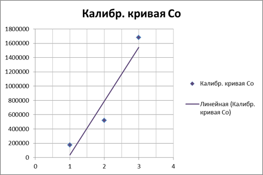 Рис. Калибровочные кривые для определяемых элементов (Fe, Co, Mn). Табл. Расчет состава соединений по результатам анализа.