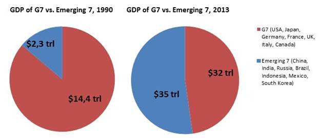 График 6. Доля ВВП «большой семёрки» и семи развивающихся стран ⇐ ПредыдущаяСтр 2 из 2
