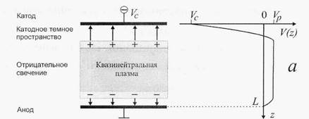Рис. 10.12. Плазма тлеющего разряда в магнетроне с параллельными электродами