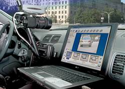 Приемник сигналов от треноги где стоит радар и камера, на патрульном автомобиле (это не радар, а всего лишь антена):