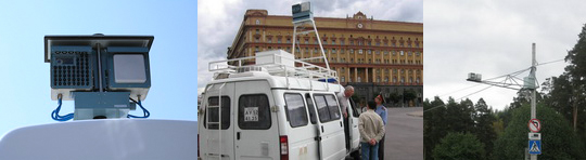 Автоматизированный стационарный комплекс фотофиксации нарушений пдд Датчики устанавливаются на поперечную ферму Автоматическая фотофиксация нарушений ПДД с передачей данных на стационарные или мобильные посты Производитель — НПО Симикон, Санкт-Петербург. Фоторадарный комплекс «КРИС»C предназначен для автоматической фотофиксации нарушений ПДД с возможностью передачи данных на стационарные или мобильные посты. Комплекс применяется также для распознавания государственных номеров ТС и проверки их по различным федеральным и региональным базам. Принцип работы фоторадарных датчиков базируется на двух процессах: измерении скорости цели доплеровским радаром и анализа кадров зафиксированной цели в зоне контроля. В фоторадарных датчиках второго поколения используется новый радар с плоской направленной антенной и очень узкой диаграммой направленности (3,6 градусов), что обеспечивает измерение скорости только тех целей, которые находятся в кадре. В датчиках установлено новое программно-аппаратное обеспечение, которое решает задачи математической обработки данных, получаемых с радара и камеры, анализа изображения на кадрах и распознавания номеров, самодиагностики, климатического контроля, а также выполняет коммуникационные функции. В результате обработки данных и анализа изображения фоторадарный датчик выдает один зафиксированный кадр со значением скорости и распознанным номером автомобиля. Полученные кадры и данные по цифровым каналам связи передаются в on-line режиме на сервер хранения центрального поста или на мобильный пост. Датчики устанавливаются над каждой полосой движения, что позволяет фиксировать всех нарушителей на данном участке дороги. Датчики можно направить навстречу или вслед движущемуся транспорту. Фоторадарный комплекс "КРИС-П" и ложный фоторадар, содержащих только имитаторы сигналов радара "Лира-1" - Диапазон К - 24,15±0,1 ГГц Сам радар с камерой и передающей антеной (пластина сверху)