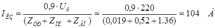 Т. к. вся осветительная проводка выполняется проводом одного сечения и применяются в подавляющем большинстве однотипные АВ, то для проверки защиты на надежность срабатывания достаточно вычислить ток КЗ в районе самого удаленного светильника группы №1. Условие надежного срабатывания: