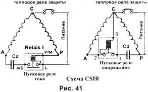 Схема CSIR (Capacitor Start Induction Run) аналогична схеме RSIR, в которую добавлен пусковой конденсатор (рис. 41).