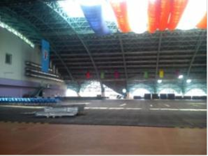 Кровля двухслойная с утеплителем: 200 мм минераловатный слой «Paroc», французское термостойкое покрытие «сипласт» (Рис.2). Покрытие отличается высокой влагостойкостью и стойкостью к воздействию солнца и ветра. Кровля выполнена таким образом, что вода стекает по специальным желобкам вниз к водосборникам и далее попадает в канализацию. На крыше есть световые проемы, служащие для естественного освещения поля, также расположены три лестницы, которые служат для поддержания кровли в рабочем состоянии.