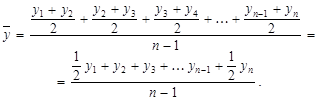 де Обчислення середнього рівня моментного динамічного ряду з однаковими проміжками часу між моментами виконується за формулою середньої хронологічної: