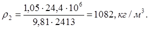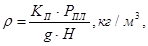 где PПЛ – пластовое давление, Па, KП – коэффициент превышения гидростатического давления бурового раствора над пластовым давлением, при H=1200-2500 м KП=1,05-1,1, g – ускорение свободного падения, g=9,81 м/с2, H – глубина залегания кровли горизонта с максимальным градиентом пластового давления, м;