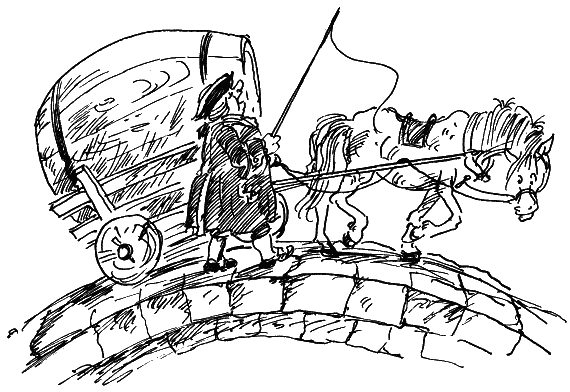 «Ни одной травинки…» – думала старая лошадь. Она тащила за собой тележку. На тележке большая дубовая бочка с надписью: «Вода принадлежит Королю». Под надписью королевский герб: золотое ведро и корона. Рядом с тележкой шагал дядюшка Буль, продавец воды. – Эй, кому воды! Ключевой, холодной! – покрикивал дядюшка Буль. «Какой у моего хозяина пронзительный голос, – подумала лошадь, – и кнут слишком длинный. Мог бы и покороче… Нет, хороший хозяин не мог бы продавать воду. Не мог бы, и всё. Он бы отдавал её даром». Телега прогромыхала по мосту. Но реки не было. Под мостом торчали сухие пыльные камни. «Какой же это мост, если под ногами нет воды? – думала лошадь. – Одно название. А ведь старый филин, Ночной Философ, который в темноте прилетает на крышу моей конюшни, мне рассказывал, что раньше здесь текла река и воды было сколько угодно. Только, может быть, он уже спятил с ума от старости? Бедный Ночной Философ…» Теперь телега катила по кривой улочке. По обе стороны стояли серые от пыли дома. «Разве это канава? – думала лошадь. – Какая же это канава, если в ней ни травинки? Ей даже стыдно называться канавой. А деревья без листьев? Разве это деревья?» – Мама, глоточек! – захныкал тощий мальчишка. – Дядюшка Буль! – окликнула продавца воды бледная женщина. – Налей кружку воды моему сынишке. – Тпрру! – крикнул дядюшка Буль, натягивая вожжи. – А что дашь за это? – Моток кружев, дядюшка Буль, – заторопилась женщина, – тонких, как паутинка! Ты же знаешь, какая я мастерица. Мальчишка одним духом опорожнил кружку, а мать держала раскрытую ладонь под его подбородком, чтобы не упало ни капли. Лошадь проехала мимо колодца, доверху заваленного большими булыжниками. Около колодца, привалясь к нему спиной, сидели два стражника: Рыжий Верзила и Рыжий Громила. От скуки плевали: кто дальше. «Какой же это колодец, если из него нельзя напиться? – подумала лошадь. – Одно название…» – Как дела? – поинтересовался дядюшка Буль. – Никто не про?.. – Чего – не про!.. – лениво переспросил Рыжий Верзила, приоткрыв один глаз. – Не пробовал ли кто‑нибудь отвалить камни и набрать воды? – Днем всё тихо, – зевнул во всю пасть Рыжий Громила. – А по ночам около каждого колодца ставят пушку. Попробуй подступись! – Эй, кому воды! Ключевой, холодной! – снова завопил на всю улицу дядюшка Буль. Но на его крик никто не вышел из домов. Двери захлопывались, закрывались окна. «Ни травинки, ни листка. Бедная земля. Мёртвый город. Траву увидишь разве только во сне да за решёткой королевского парка. Как плещется вода в бочке, с ума сойти!» Вот о чём думала старая лошадь дядюшки Буля.