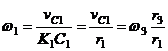 Все входящие сюда скорости надо выразить через искомую . Для этого предварительно заметим, что , где – любая точка обода радиуса шкива 3 и что точка – мгновенный центр скоростей катка 1, радиус которого обозначим . Тогда