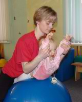 Бокс с кольцами. Уже знакомое вам упражнение с кольцами, которые с одной стороны держите вы, а с другой – ребёнок. Действуйте аккуратно, не слишком нагружая суставы малыша. - Разрабатывание плечевых суставов. Уложив ребёнка на спину, зафиксируйте ладонями запястья и выполняйте широкие круговые движения – неважно, синхронно или вразрез.