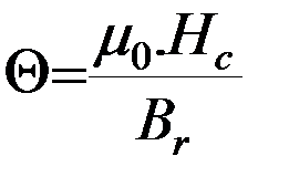 К закритическим материалам относятся ферриты марок 6БИ240, 15БА300, материал марки КС37 на основе интерметаллического соединения “самарий- кобальт”. К докритическим материалам относятся сплавы типа альнико и монокристаллы. Например, марки ЮН14ДК24, ЮНДК3575АА, ЮНДК40Т8. Магнитотвердые материалы, колено кривых которых находится на границе второго и третьего квадрантов, называются критическими. Например, марки 18БА220, 22БА220. Важнейшими параметрами кривых размагничивания являются остаточная индукция Вr и коэрцитивная сила Нс. Магнитной твердостью называется отношение: