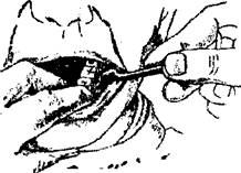 Третий нижний моляр (зуб мудрости) имеет различные варианты строения корней. Иногда корни срастаются между собой, могут быть искривлены кзади в сторону ветви. Удаление зуба вызывает иногда определенные трудности, поэтому перед удалением третьих моляров необходимо рентгенологическое обследование. Для удаления этих зубов применяют специальные щипцы, изогнутые по плоскости, а также элеватор Леклюза (рис. 48). Иногда используют долото. Удаление корней зубов на нижней челюсти производят клювовидными щипцами со смыкающимися щечками (клювовидные сходящиеся) и при помощи элеваторов (рис. 49).