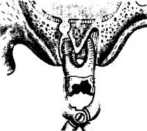 Рис. 56. Перфорация дна верхнечелюстной пазухи Перфорация может преобразоваться в свищевой ход через 3—5 недель (у 70 % больных), или произойдет ее ликвидация по мере заживления лунки (30 %). Возникновение перфорации является предрасполагающим фактором для инфицирования синуса и развития воспаления, поэтому выжидательная тактика врача нежелательна. Необходимо предпринять меры для устранения перфорации верхнечелюстного синуса. Тактика врача в таких случаях зависит от состояния верхнечелюстного синуса. При отсутствии воспалительных явлений в нем (на основании анамнеза и выделений из лунки, а также данных рентгенологического обследования) показано сохранение образовавшегося в лунке кровяного сгустка путем использования йодоформной турунды. Турунду накладывают на устье лунки и фиксируют к соседним зубам лигатурной проволокой или швами к окружающей слизистой оболочке. Нельзя тампонировать лунку на всю глу- бину, так как не будет возможности образования кровяного сгустка, а образовавшийся ранее сгусток может быть разрушен, что может быть причиной формирования свищевого хода. При наличии условий и возможностей, особенно при широкой и короткой лунке, когда есть опасность разрушения кровяного сгустка, можно использовать хирургический метод закрытия перфорации. Он заключается в иыкраивании трапециевидного слизисто-надкостничного лоскута с вестибулярной поверхности альвеолярного отростка через край лунки удаленного зуба. Лоскут отслаивают, сглаживают фрезой острые края лунки, проводят ее ревизию, промывают лунку антисептиками. Далее освежают края лоскута и раны со стороны неба, мобилизуют лоскут, рассекая надкостницу горизонтальным разрезом у основания лоскута (в глубине раны). Растяжимая слизистая оболочка позволяет перекрыть лоскутом лунку. Следующий этап операции - фиксация лоскута швами к окружающей слизистой оболочке. Снаружи больному накладывают фиксирующую повязку на 2-3 суток. Назначают противовоспалительное лечение (сульфаниламиды, десенсибилизирующие препараты, сосудосуживающие капли в нос). Больной нуждается в освобождении от работы, щадящем режиме поведения и питания. Не следует устранять перфорацию путем скусывания костных стенок лунки и сближения краев слизистой оболочки. Как правило, эти меры не дают ожидаемого результата. Бесполезной оказывается попытка устранения перфорации или свища, если корень соседнего зуба обнажен, не имеет межкорневой перегородки (разрушенной во время удаления или в результате воспалительного процесса). Этот корень становится постоянным дренажем и будет поддерживать сообщение полости рта с верхнечелюстным синусом даже в случае удачного приживления лоскута. Такой зуб подлежит удалению. Если во время удаления зуба корень проник в верхнечелюстной синус, не следует пытаться удалить его через лунку. В таком случае больного необходимо безотлагагельно направить в специализированное стоматологическое учреждение, где ему могут провести операцию удаления этого корня. Нахождение инфицированного корня зуба в синусе неминуемо ведет к развитию воспаления - синусита. При наличии у пациента синусита и гнойных выделений из синуса через лунку удаленного зуба возможно промывание синуса через этот дефект антисептическими растворами (перманганат калия, фурацилин, хлоргексидин