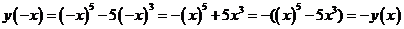 3. Функция нечётная, так как 4. Определим участки монотонности и локальные экстремумы. Вычислим критические точки функции. У многочлена у всех критических точек Для определения знаков производной применяем метод интервалов и заполняем соответствующую таблицу Производная на интервалах
