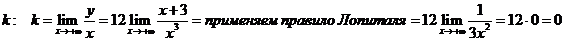 6. Находим асимптоты графика функции. Асимптота это прямая, к которой неограниченно приближается график функции при Сначала определяем Затем определяем