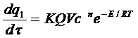 где: К – константа скорости реакций, зависящая от температуры; с – концентрация реагирующих веществ; n – порядок реакции; Е – энергия активации реакции. Скорость выделения тепла при реакции: