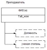 | - Согласно приведенному фрагменту ER-модели в ВУЗе преподаватели могут