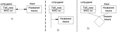 - Каждый сотрудник владеет одним или несколькими иностранными языками. Фиксируется, каким языком и в какой степени владеет каждый сотрудник. Правильно отражают предметную область схемы: