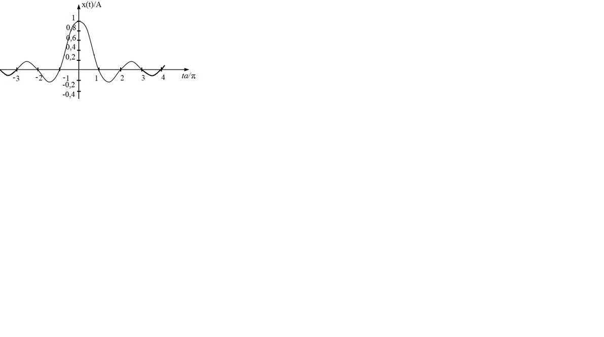 Рисунок 3.1 В приведенном примере спектр сигнала оказался бесконечным. Это соответствует общему правилу: спектр сигнала конечной длительности бесконечен, и, наоборот, сигнал с конечным спектром имеет бесконечную длительность. Для сигнала с бесконечным спектром вводят понятие эффективной ширины спектра Для примера 1 интегрирование в пределах основного лепестка спектра прямоугольного видеоимпульса дает 90% энергии этого импульса. Таким образом, если исходить из 90 %-ного критерия, эффективная ширина спектра прямоугольного видеоимпульса равна Пример 3.2 - Спектральная плотность сигнала вида