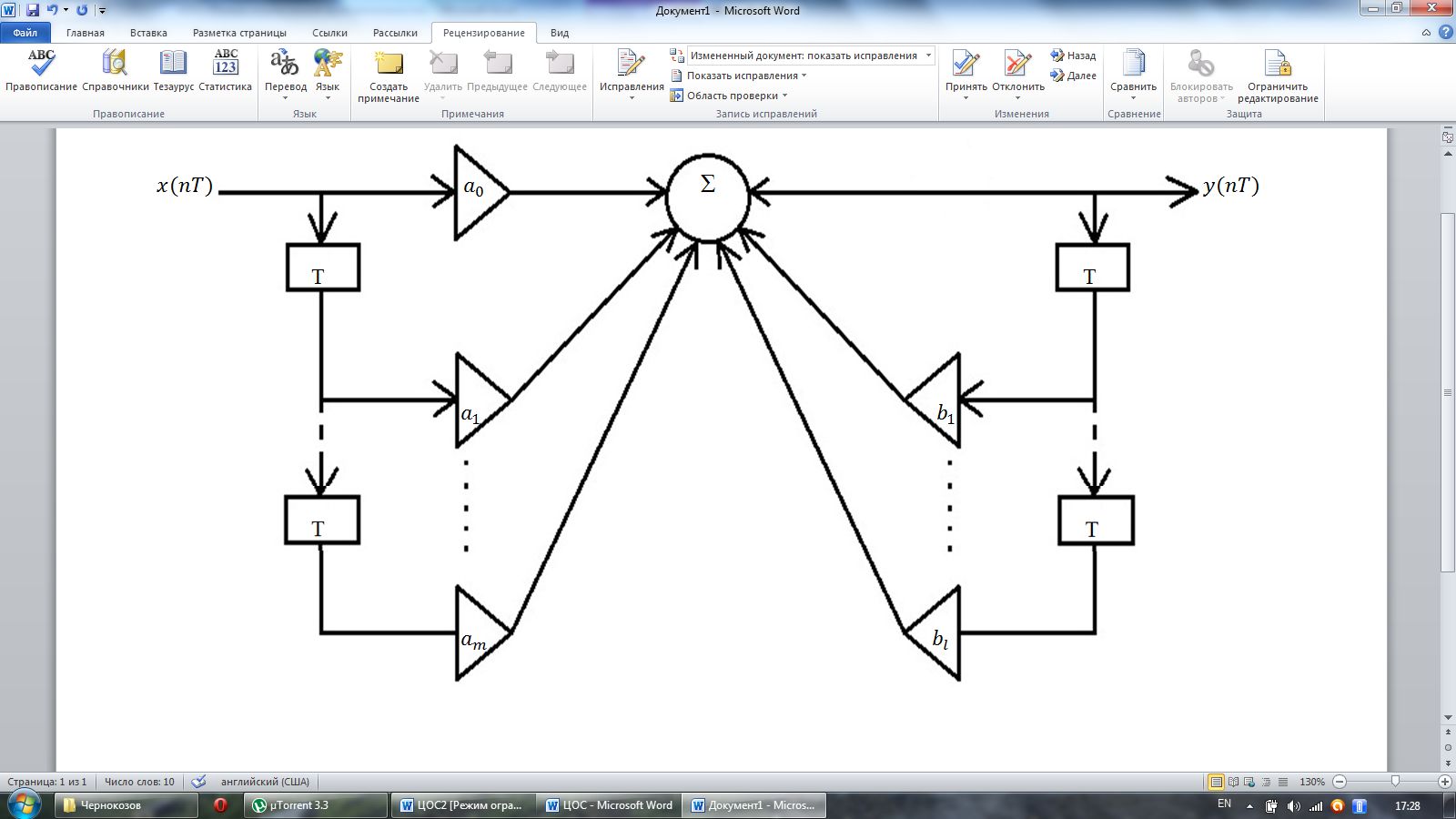 где (M+1) – число прямых связей, L – число обратных связей. Структурная схема, соответствующая уравнению (6.1) имеет вид: