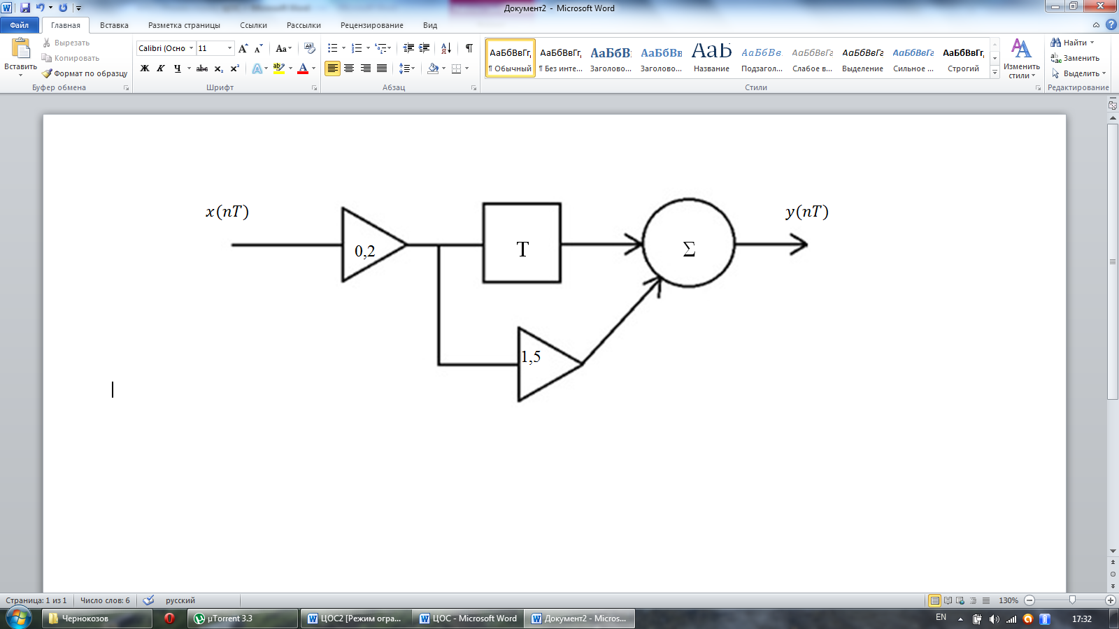 Рисунок 6.3 Решение. Разностное уравнение системы с обратной связью имеет вид: