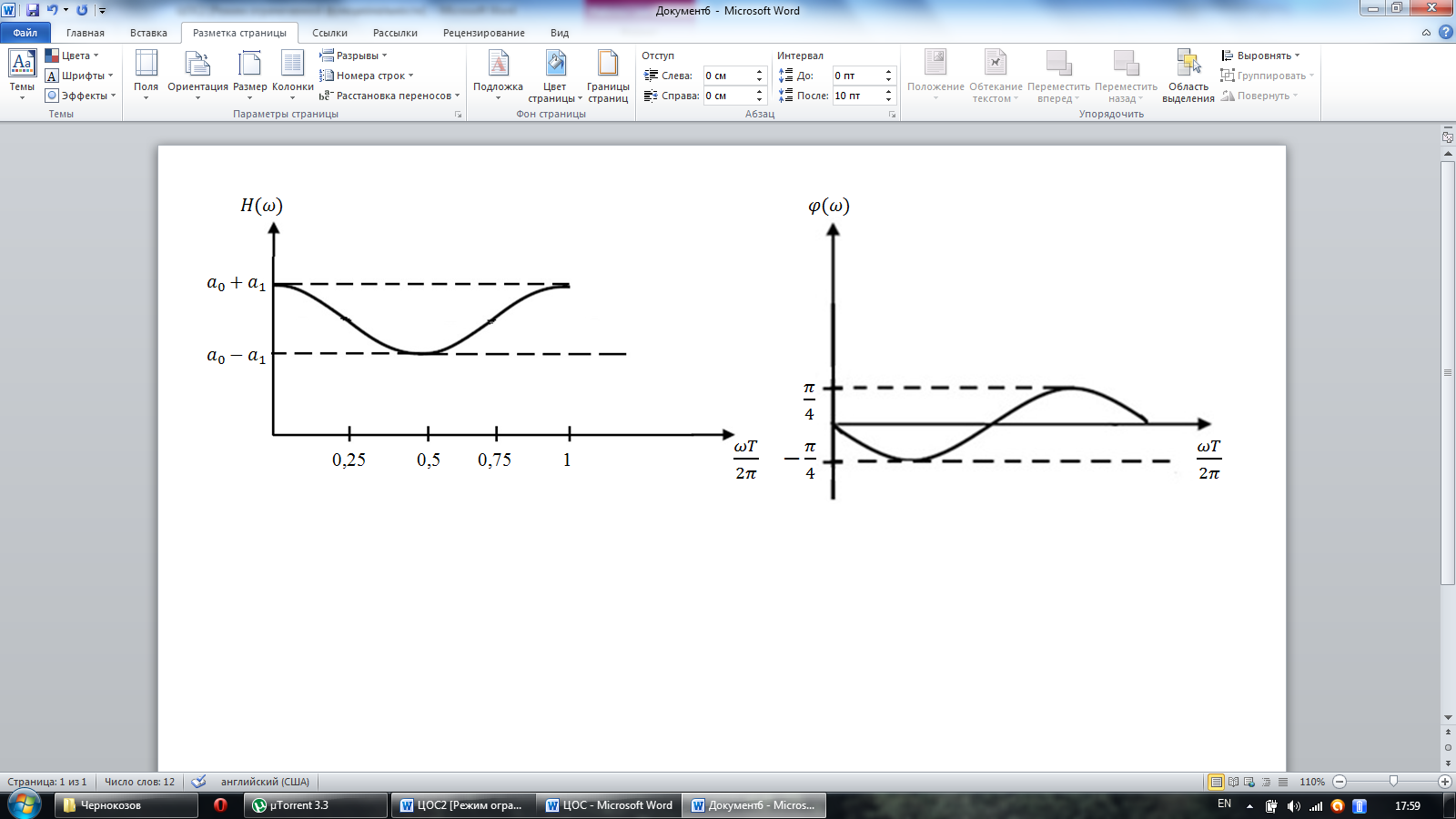 Пример 6.4 - Определить частотные характеристики дискретной системы, передаточная функция которой: Комплексный коэффициент передачи: