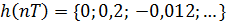 Рисунок 6.5 Во временной области дискретная система характеризуется импульсной характеристикой, т.е. реакцией на дискретную Импульсную характеристику системы можно определить решением разностного уравнения, полагая Пример 6.5 - Определить импульсную характеристику системы, представленной на рис. 6.3. Решение. Разностное уравнение системы: