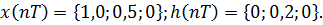 Так как исходные числовые последовательности сигнала и системы должны иметь периоды равные Пример 6.8 - Вычислить круговую свёртку по данным примера 6.7. Решение. Представить импульсную характеристику системы конечной числовой последовательностью Так как