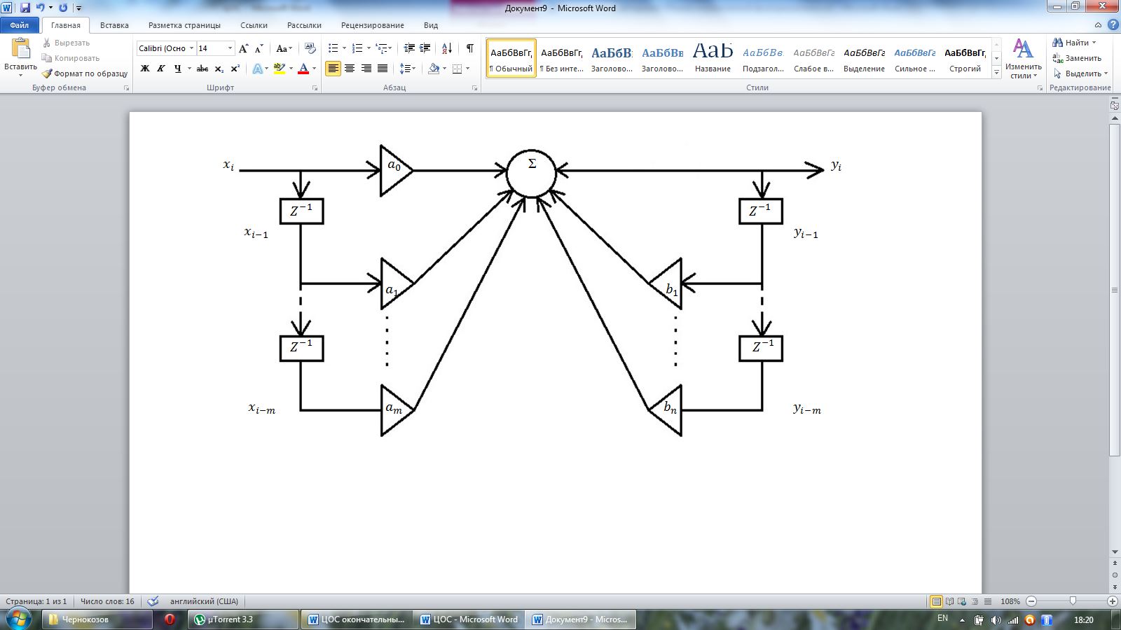 Рисунок 7.3 Рекурсивный фильтр работает в соответствии с алгоритмом: