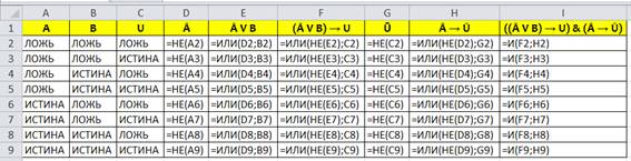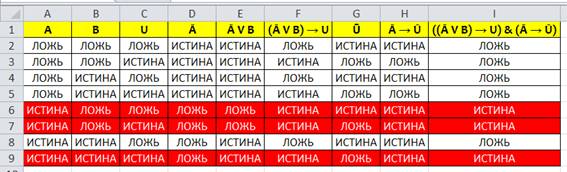 5. После вычисления формул таблицы истинности, получаем следующий результат: