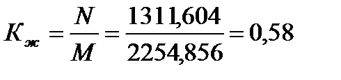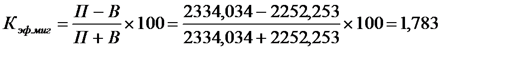 - коэффициент прибытия: - коэффициент выбытия: - коэффициент механического прироста: Кмех пр = Кприб – Квыб = 22,20 – 21,42 = 0,78 %о; - коэффициент эффективности миграции: