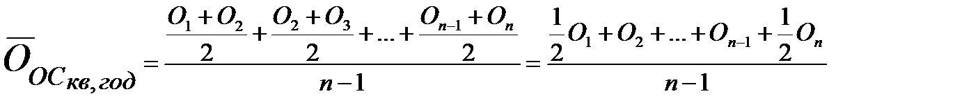 · 3.2. Расчет среднегодовой стоимости остатка ОС Оборотные средства учитываются с помощью следующего показателя – стоимости остатков на конец и начало месяца. Оборотные активы учитываются во II разделе актива бухгалтерского баланса. Так как стоимость остатков на начало и на конец каждого месяца приходится всегда на разную величину, то необходимо вести расчет среднего остатка оборотных фондов за месяц, квартал и год. Расчет средней месячной ведут по средней арифметической простой, а средней квартальной и средней годовой по средней хронологической.