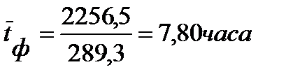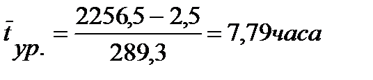Степень использования раб. времени возросла на 1,3% за счет сверхурочных работ, а также м. б. за счет сокращения перерывов и др. 6. Рассчитаем среднюю урочную продолжительность одного раб. дня: