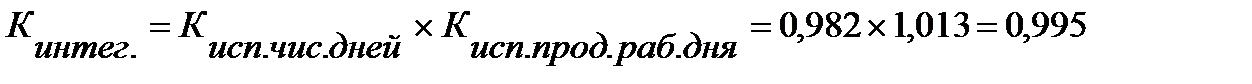 Этот результат говорит о том, что мы улучшили использование раб. времени на 0,9 часа за счет сокращения только перерывов. 7. Рассчитаем степень использования раб. времени за счет обоих факторов – числа дней работы 1 работника в году и продолжительности 1 раб. дня: Результат коэффициента говорит о том, что у предприятия есть резерв неиспользованного времени, потенциальная возможность улучшения степени использования за счет указанных показателей на 0,5%. Date: 2015-07-27; view: 482; Нарушение авторских прав |