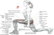 Выпады с гантелями Х 2-3 · Основные мышцы - большая ягодичная и четырехглавая мышца бедра · Дополнительные - задняя поверхность бедра