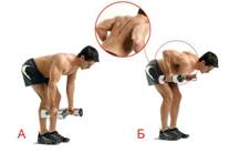 Тяга гантелей в наклоне Х 2-3 · Основные мышцы - широчайшая · Дополнительные - большая круглая, ромбовидная, бицепс и трицепс (длинная головка)