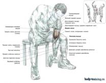 Сгибание руки сидя через колено10-15-20 х 2-3 · Основные мышцы - бицепс · Дополнительные - плечевая мышца